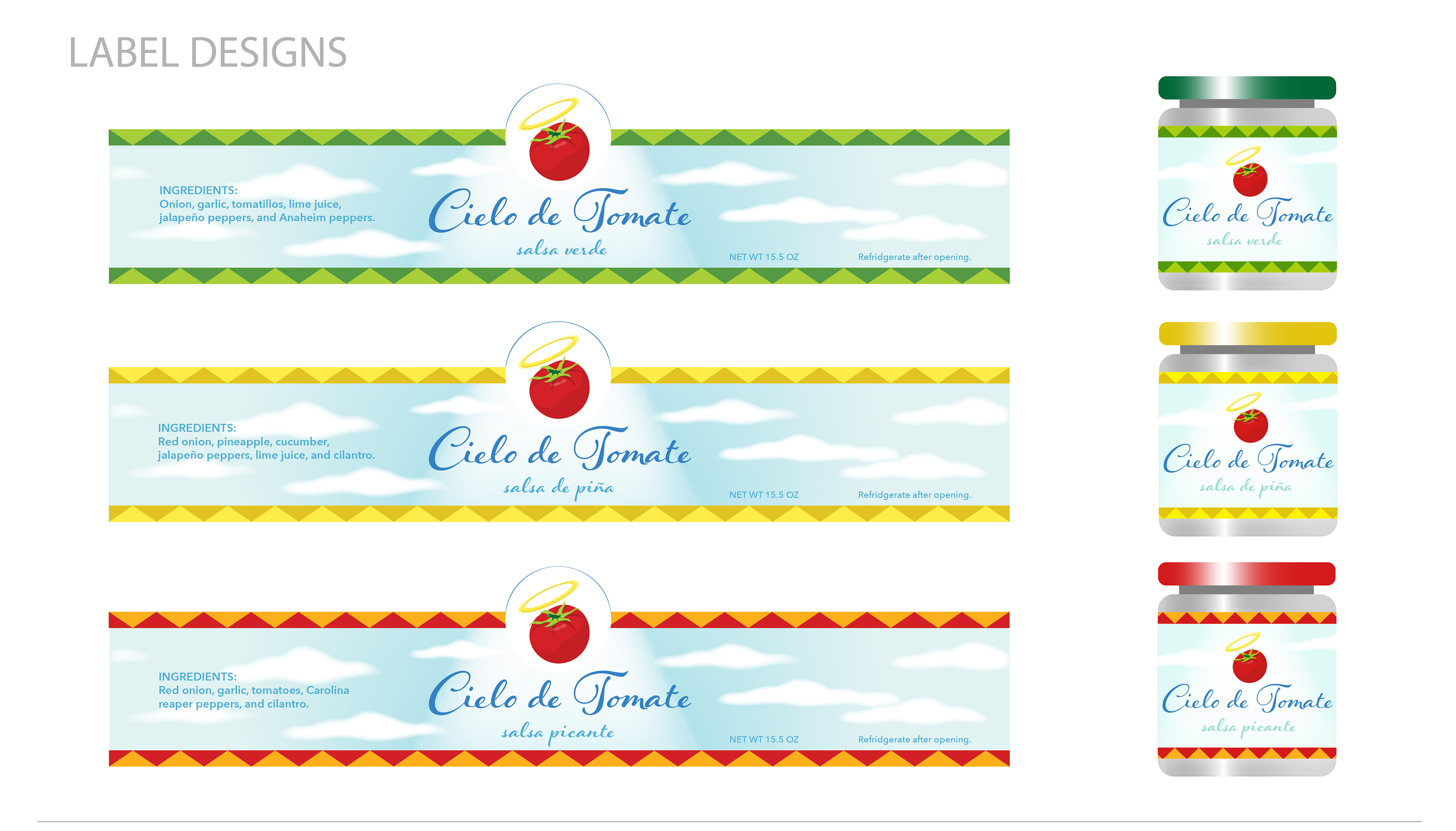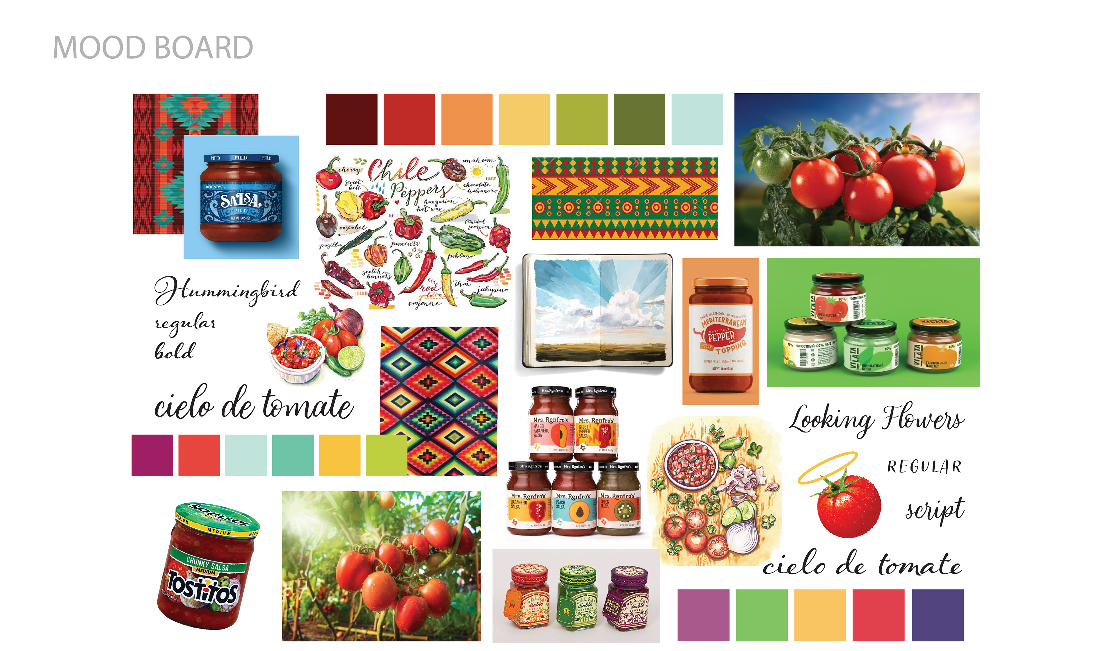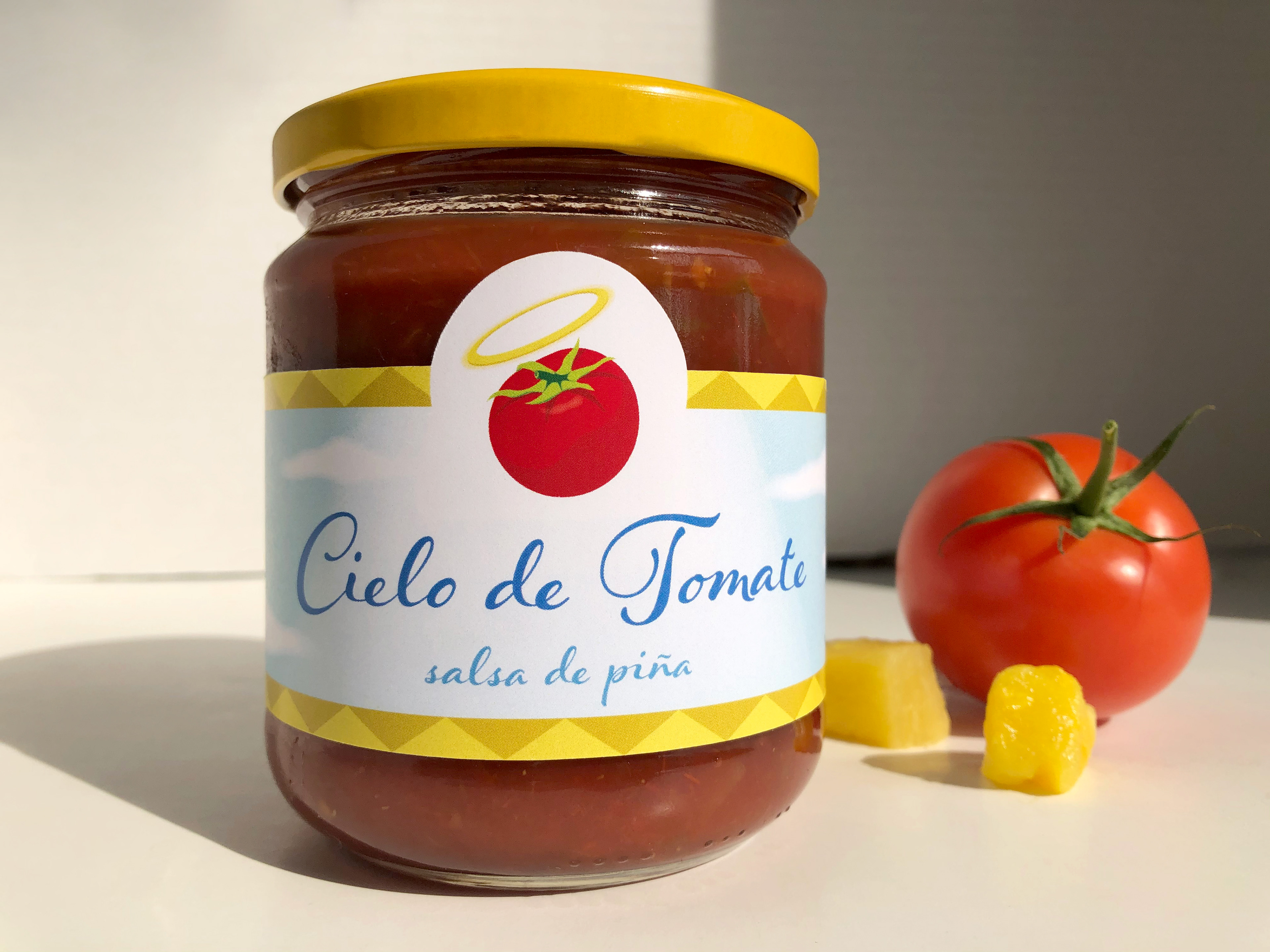 The creation of a proposed salsa brand that directly translates from Spanish to English as "Tomato Heaven." This process outlines product photography, brand identity, logo, and packaging design.