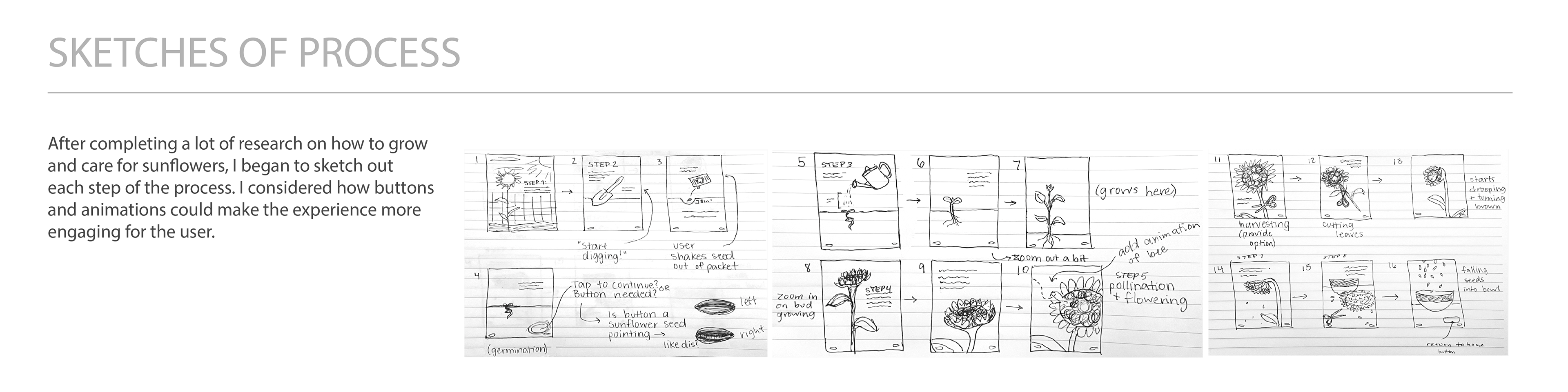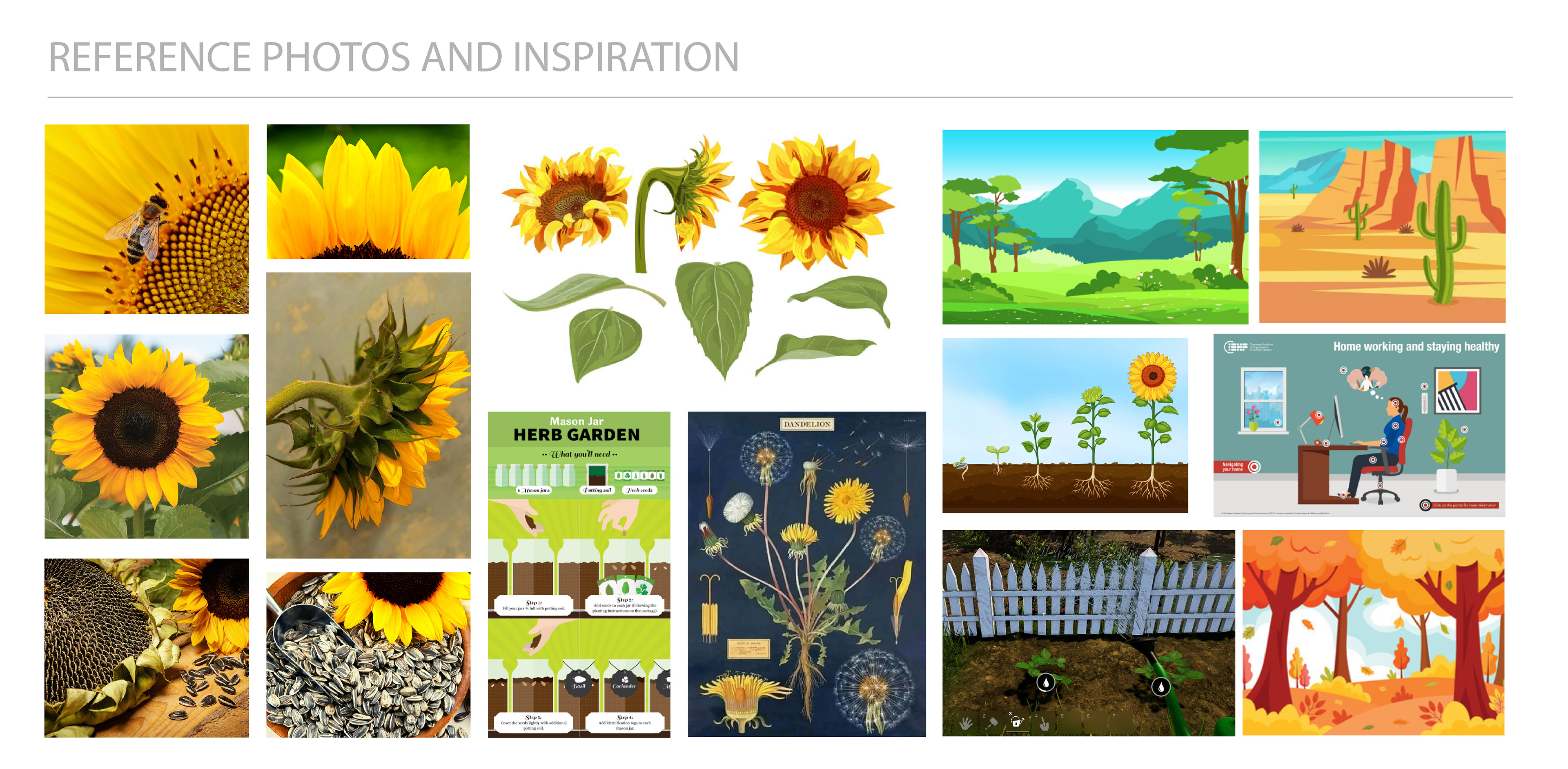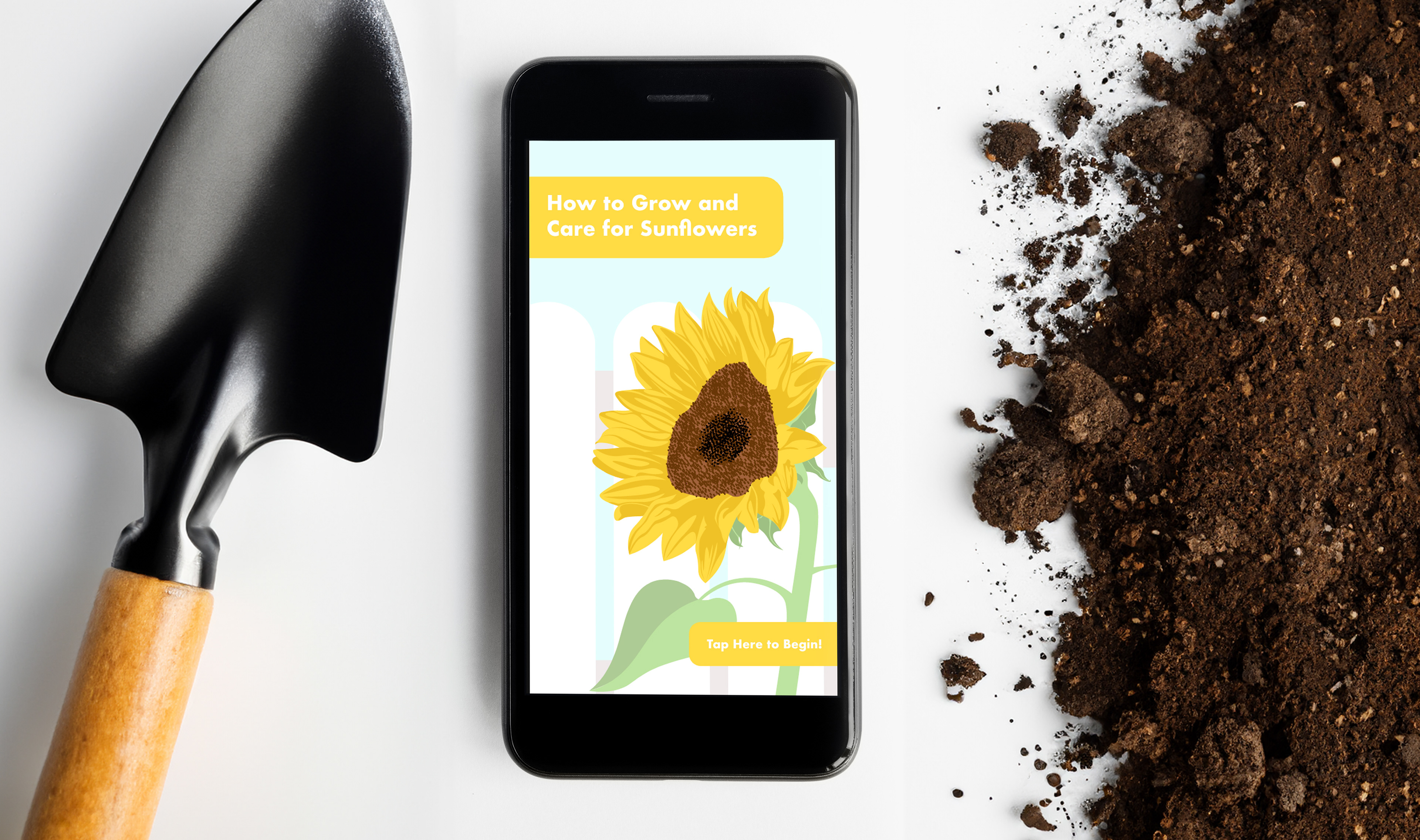 An illustrative take on an interactive mobile walkthrough, where users can engage as they learn how to grow and care for sunflowers.